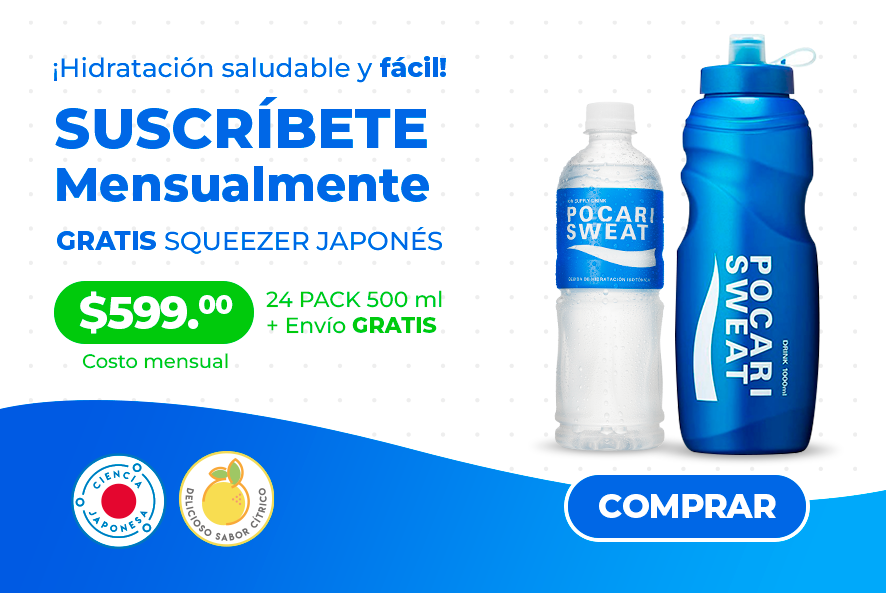 Botellas Botella 500 ml - 24 pack Caja24 $599.00 Pocari Sweat es una bebida de hidratación diaria con equilibrio de 5 iones esenciales para el cuerpo humano. Apta para el consumo desde el primer año de edad y perfecta para mantenerte hidratado por tus actividades del día a día. Hay momentos donde es especialmente necesario cuidar nuestro nivel de hidratación: Días secos (por calor o frío), Antes y... Añadir al carrito